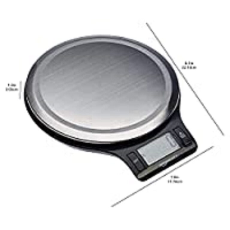 Amazon Basics Digital kitchen scales with LCD display (with batteries), Black and Stainless Steel, BPA free, Weighs up to 11 pounds