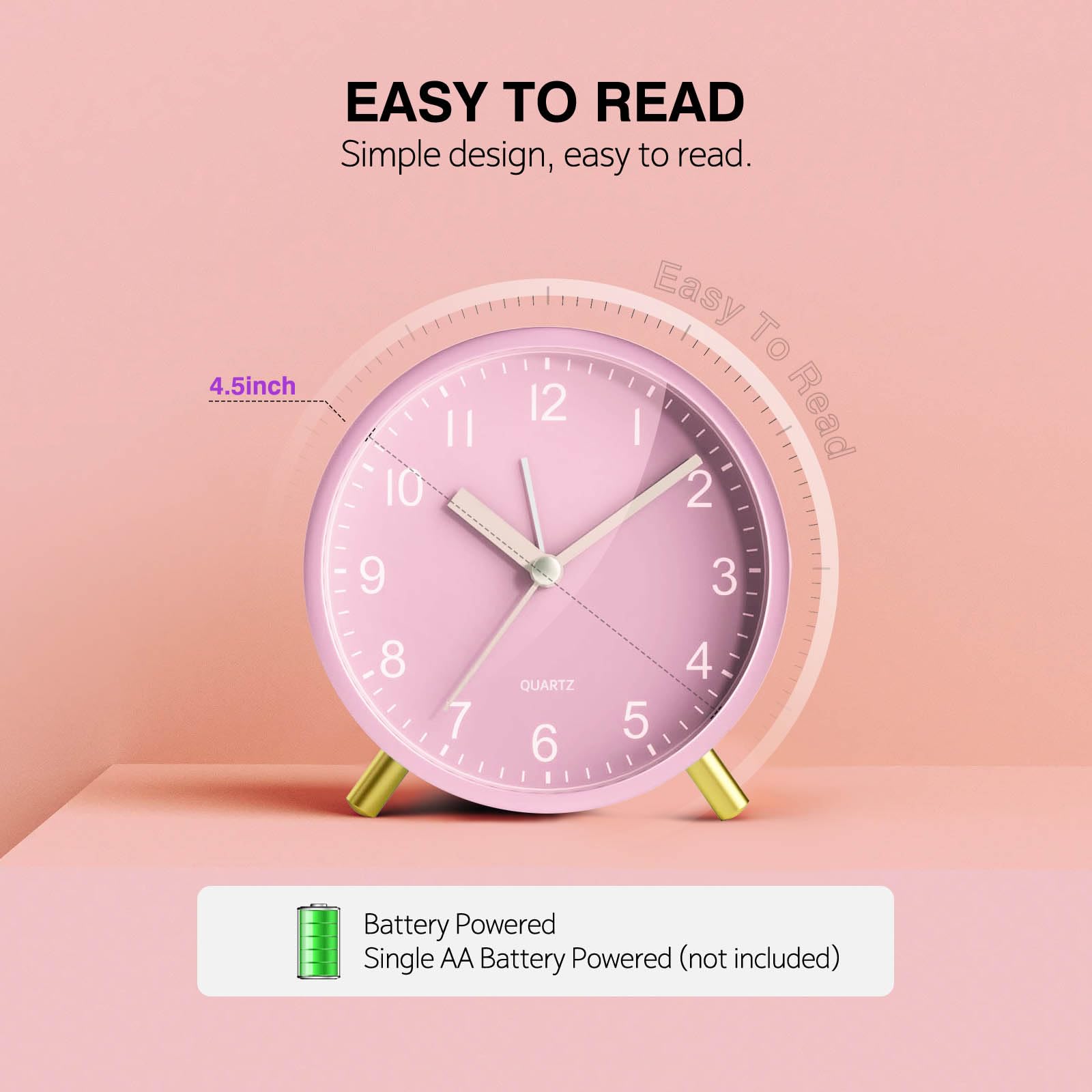 - 【Elegant Pink & Rose Gold Design】Beautifully crafted in soft baby pink with luxurious rose gold hands and feet. This stylish clock combines feminine elegance with modern functionality, perfect for creating a chic atmosphere in any girl's room