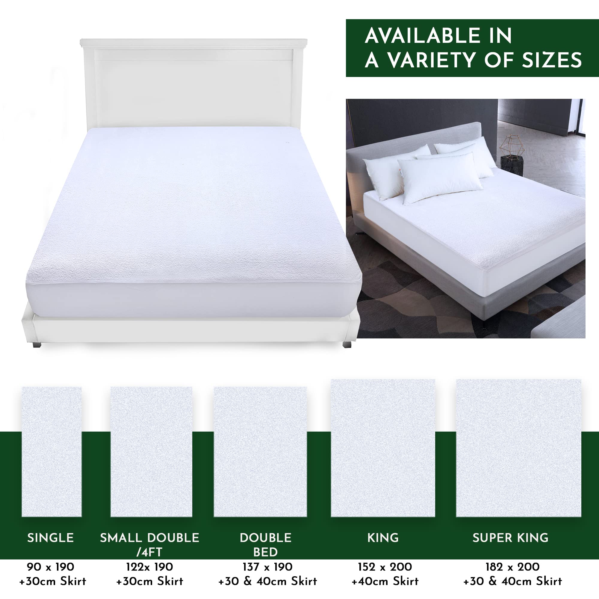 - <b>Size Guidelines: </b> single Mattress Protector WaterProof (Bed Width X 90, Bed Length X 190 + 30cm Deep Mattress Skirt) or Buy -mattress protector single bed- in 40cm Deep Skirt.